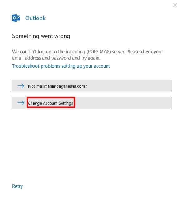Si aparece una ventana de error, debes reajustar la configuración haciendo clic en Cambiar configuración de la cuenta y asegurándote de que todo esté de acuerdo a lo requerido.