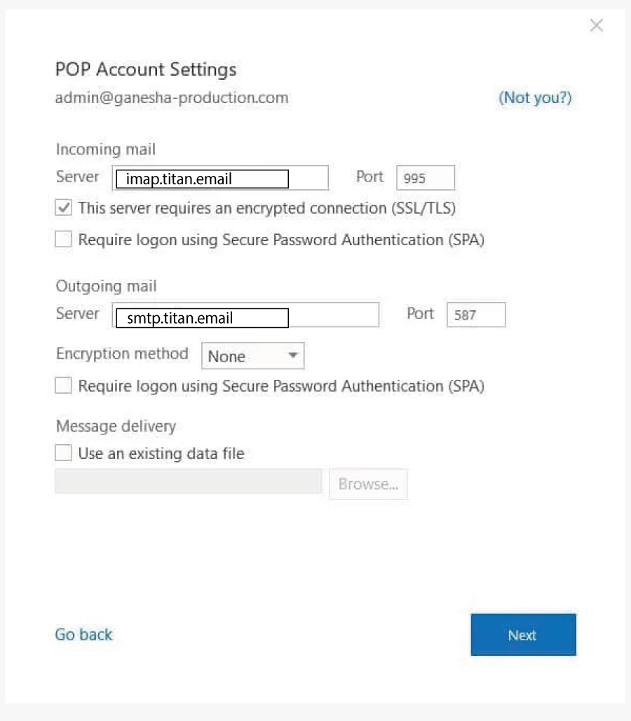 Paso 2: configura los servidores POP/IMAP y SMTP