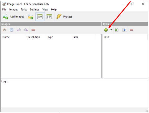 2. Establecer la imagen que va a actuar como “marca de agua”. Hacer clic en el + de “Tasks”