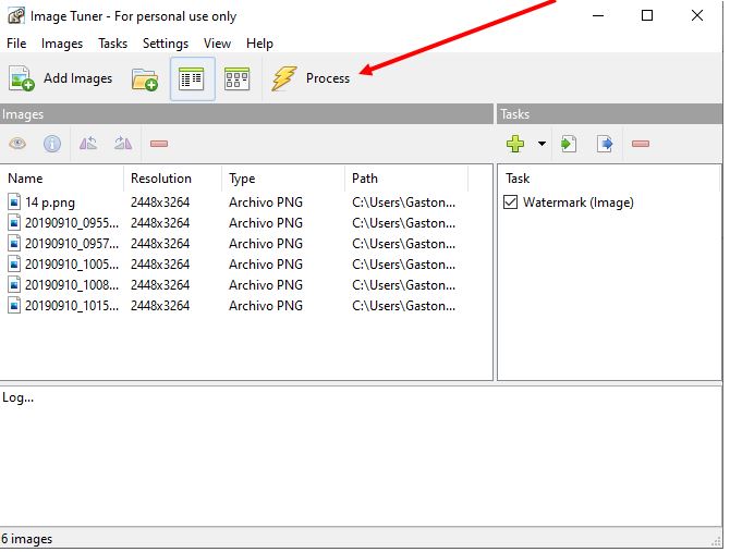 11. Se cargan las imágenes en el panel izquierdo (Images). Luego hacer clic en “Process”
